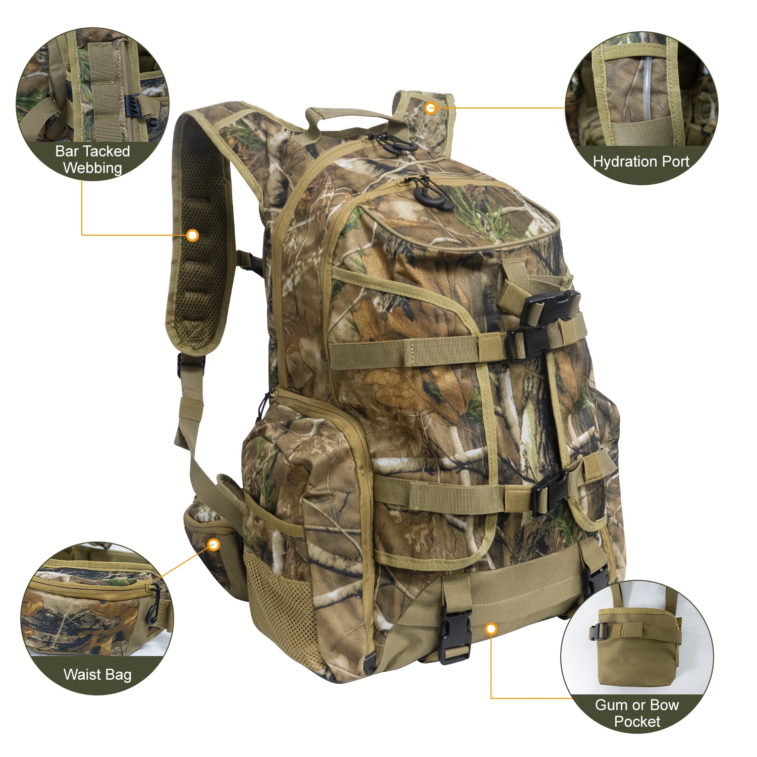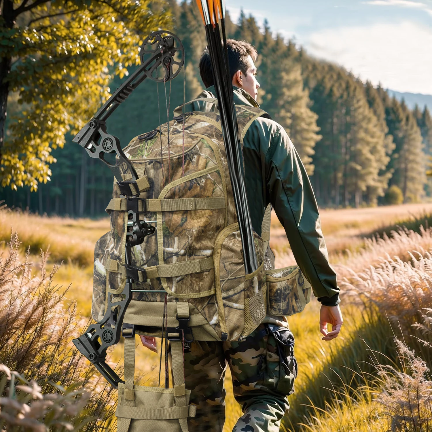 - كن مستعدًا لكل رحلة صيد وتخييم مع حقيبة الظهر المخصصة للصيد مع حامل بندقية مقاومة للماء، المصممة لتمنحك حملاً آمنًا وتنظيمًا عمليًا لمعداتك في البيئات الخارجية الصعبة. تجمع بين القوة، الراحة، والحماية أثناء التنقل.