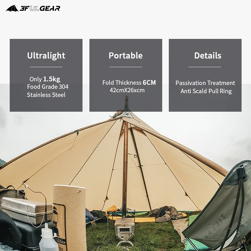- تمتعي بتدفئة وطهي مريحة في الهواء الطلق مع موقد التدفئة الخفيف القابل للطي للتخييم، المصمم ليمنحك الأداء العملي مع سهولة الحمل والتنقل في الرحلات والمغامرات البرّية.